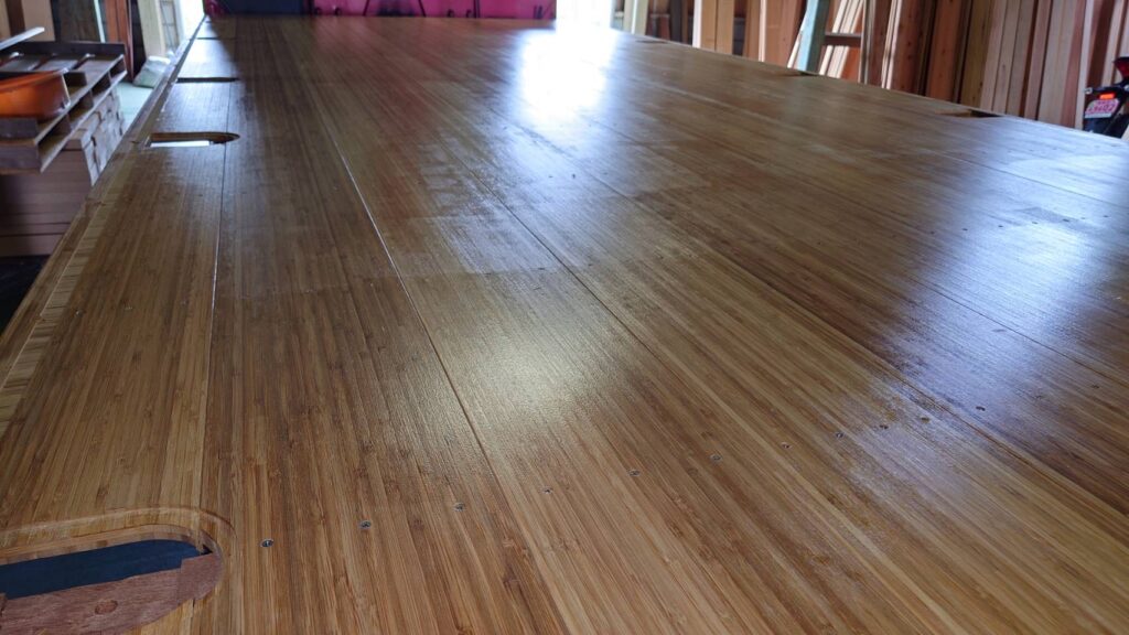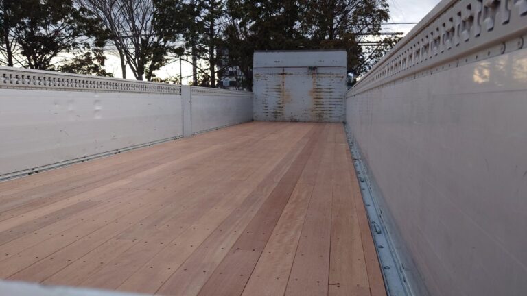 トラックの荷台に利用するフローリングを用意しています。材種はアピトン材です。