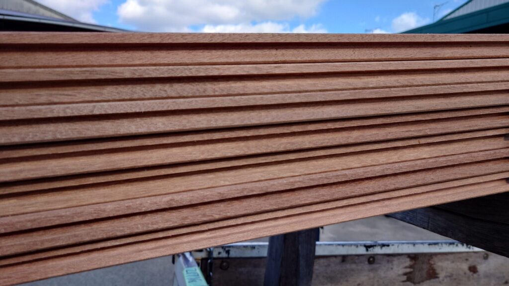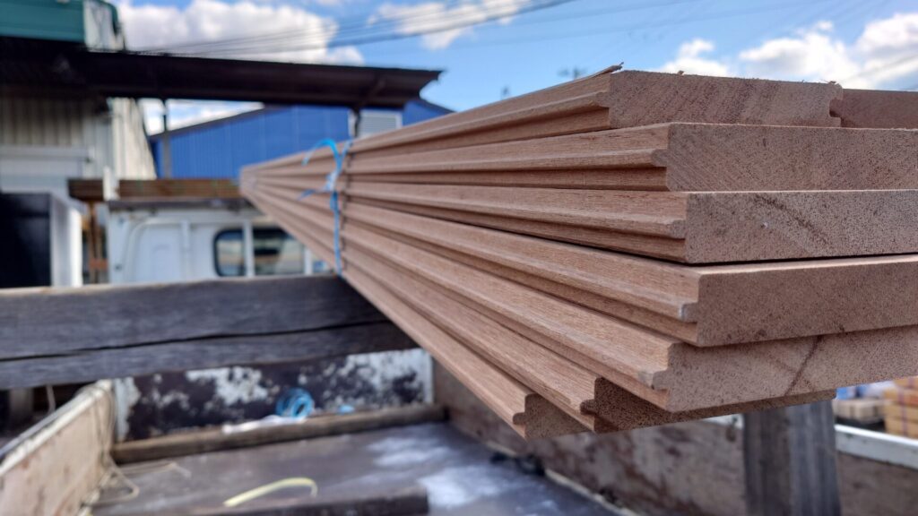アピトン材は、高い耐摩耗性・耐衝撃性を持ち、重量物の積み下ろしが日常的に行われるトラックボディ床材として長年選ばれてきた実績ある木材。