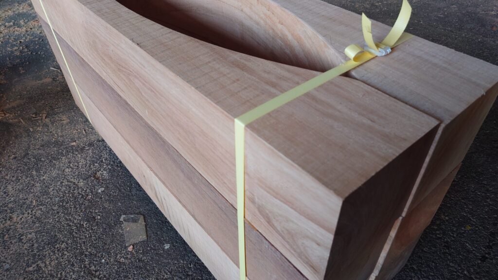 南洋材のアール加工を行いました。